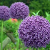 2. Посадка аллиума осуществляется осенью небольшими группками. Луковицы помещаются на глубину 8-10 см и на росстояние 30 см друг от друга. 3. На зиму посаженные в землю луковицы укрывают слоем лапника, листьев, перегноя, соломы или торфа.