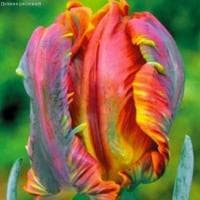 И здесь нет никакого преувеличения! Увидев попугайный тюльпан Блюмекс, вы в этом убедитесь сами! На тонком, но весьма упругом стебле гордо возвышается огромный (до 15 см в диаметре!) бутон, цветовая гамма которого просто не поддается описанию, потому что удивительно богата, насыщенна и разнообразна. В его экзотических лепестках соединились чуть ли не все цвета и оттенки радуги. Но преобладает все же оранжево-красно-зеленый окрас.